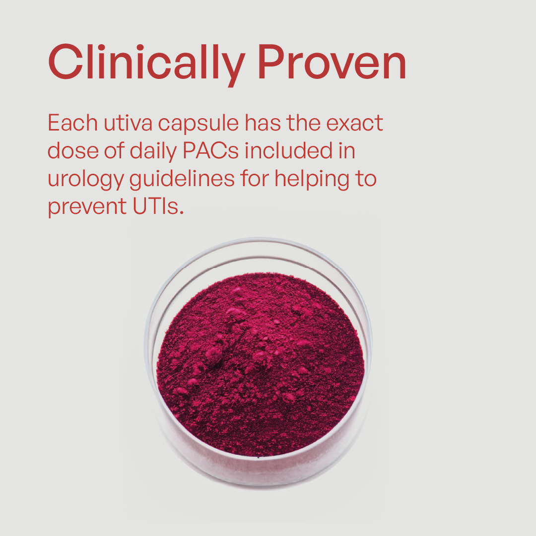 Taking 1 Utiva Cranberry PACs daily ensures you have enough PACs in your bladder to keep blocking the bacteria that cause UTIs.